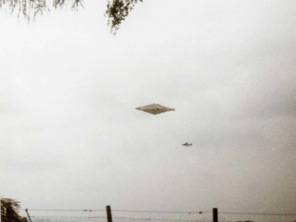 1990 Calvine, Perthshire, Scotland. Purported to show a UFO being surveilled by a military craft.