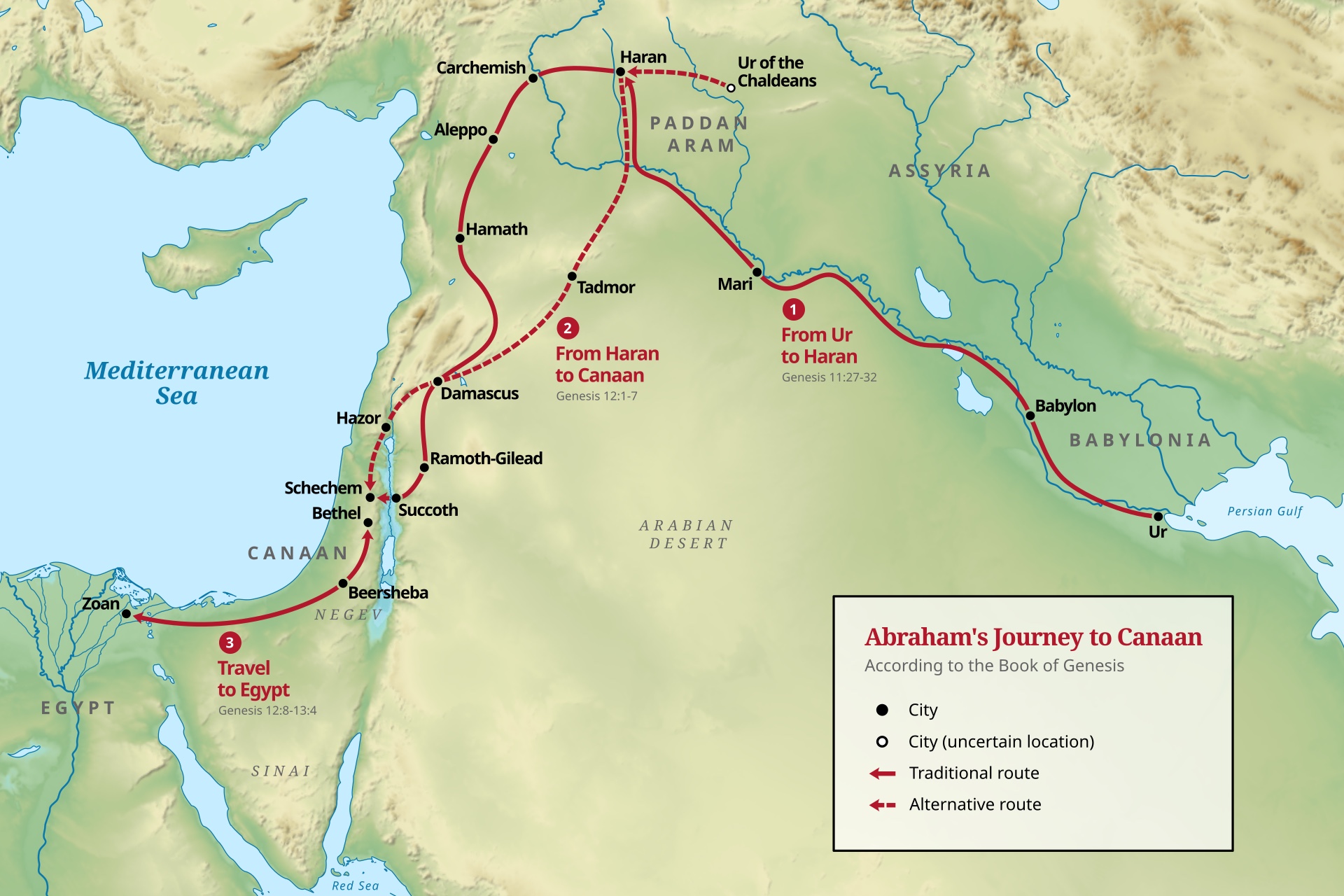 Abraham's Journey to Canaan according to the Book of Genesis.