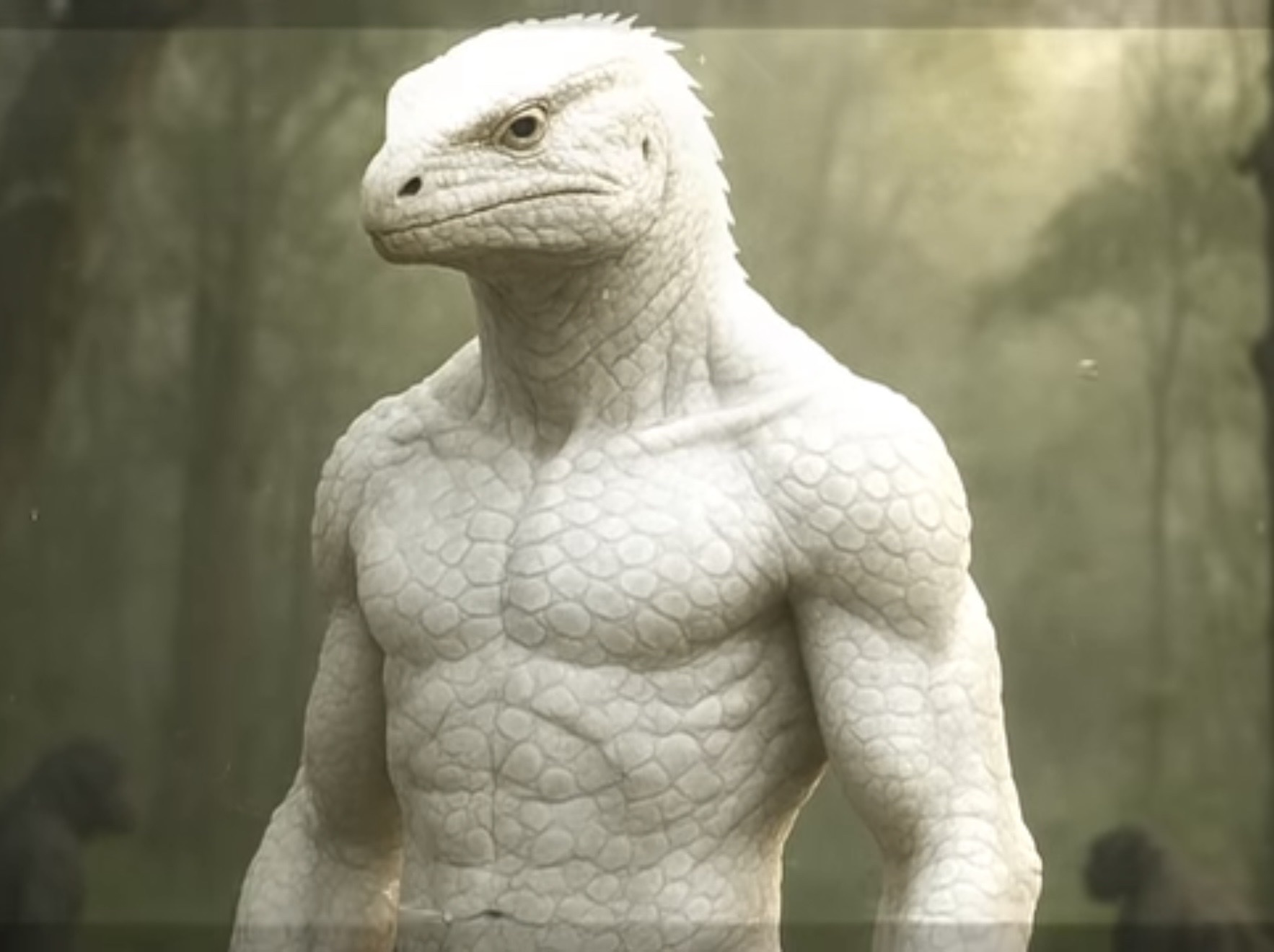He was 3 and a half meters in height, with a reptilian body standing in two feet and he was albino, white skin.